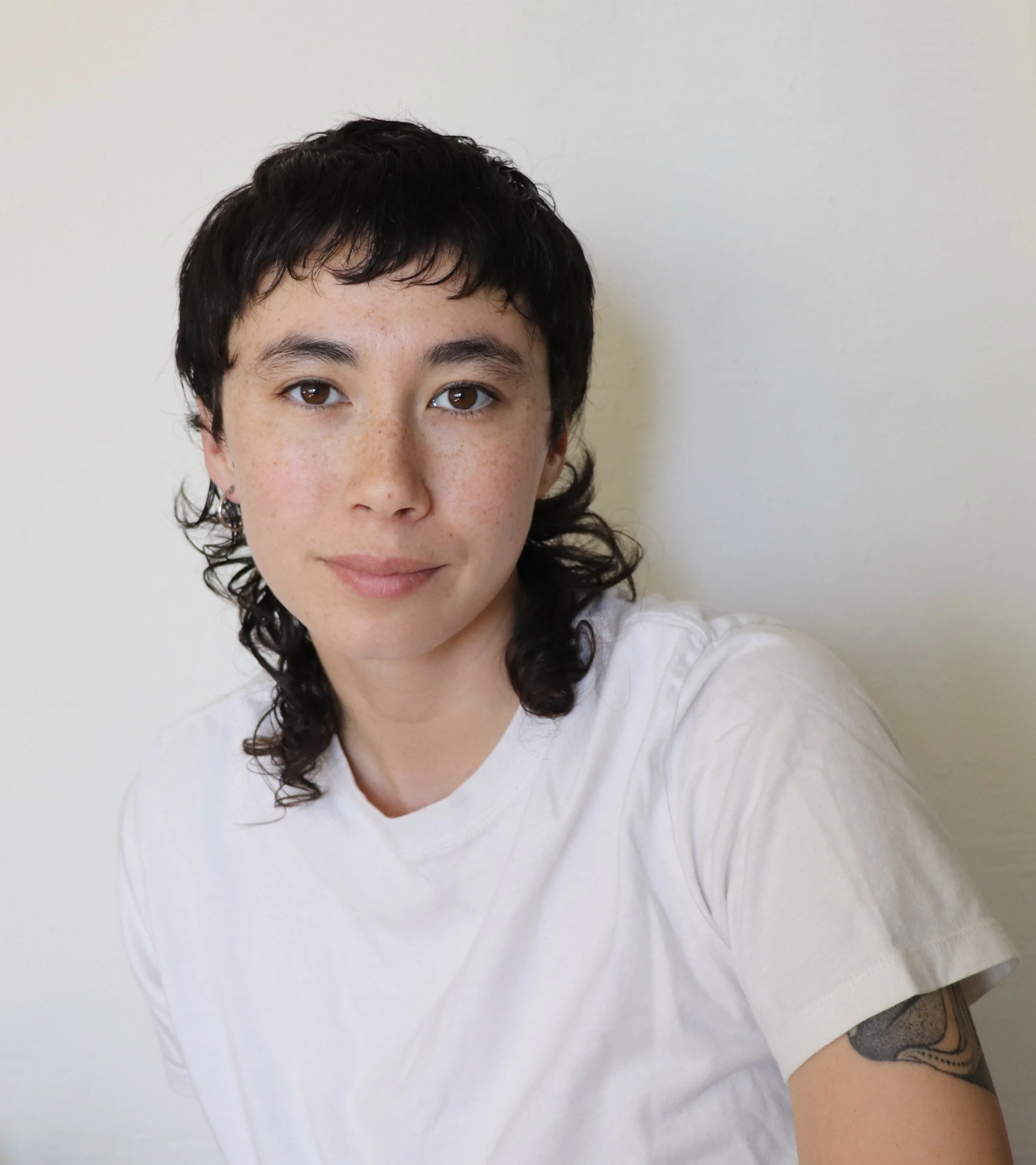 Zoe Huey [ they/them ] grew up and is currently residing on the unceded land of the Ohlone people- also known as Oakland. Zoe is a mark maker, painter, mover/performer, hand poke tattoo artist and dance teacher. Their visual work is largely inspired by lines, shapes, forms and color found in nature and everyday life - rocks found on the beach, peeling tree bark, all the different grays in a lawn of pebbles, blossoming fruit against houses painted bright colors, dewy spider webs, huge succulents, vast expanses of sky, shadows and light at golden hour. Zoe learns a lot about creativity, play, and improvisation from the kids they dance with. They are interested in how visual art and performance inform one another - in process and final form. Zoe is chinese american + white, nonbinary/gender pixelated, and currently in another cycle of growing out their hair from a buzz. It's in the awkward phase. Zoe makes dances with their sister.